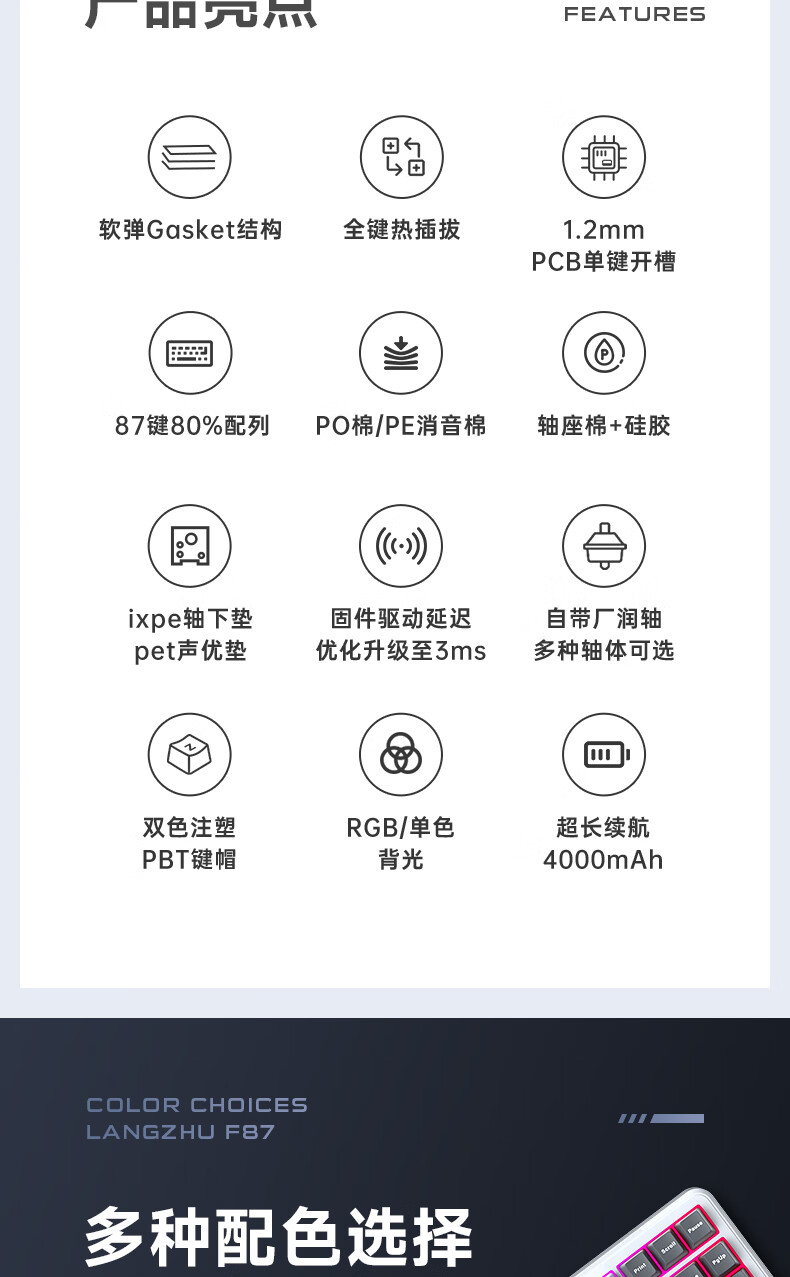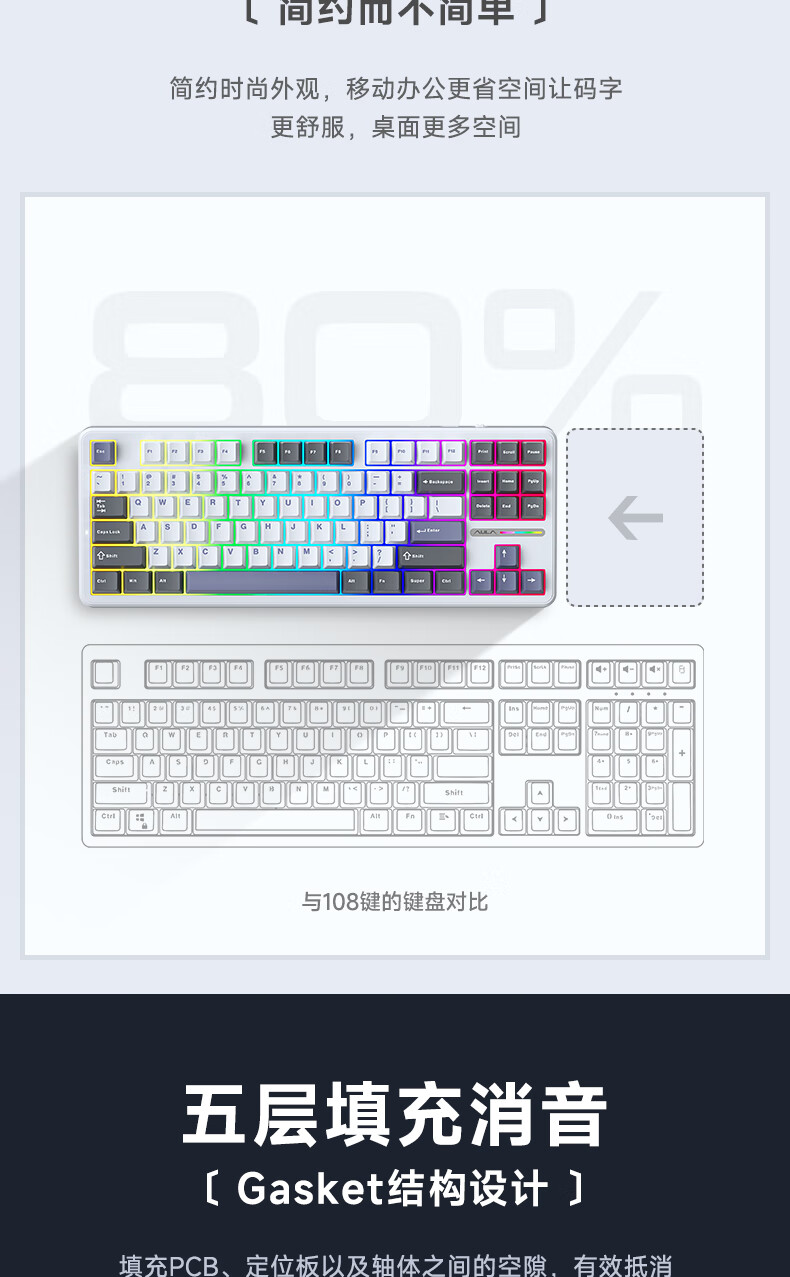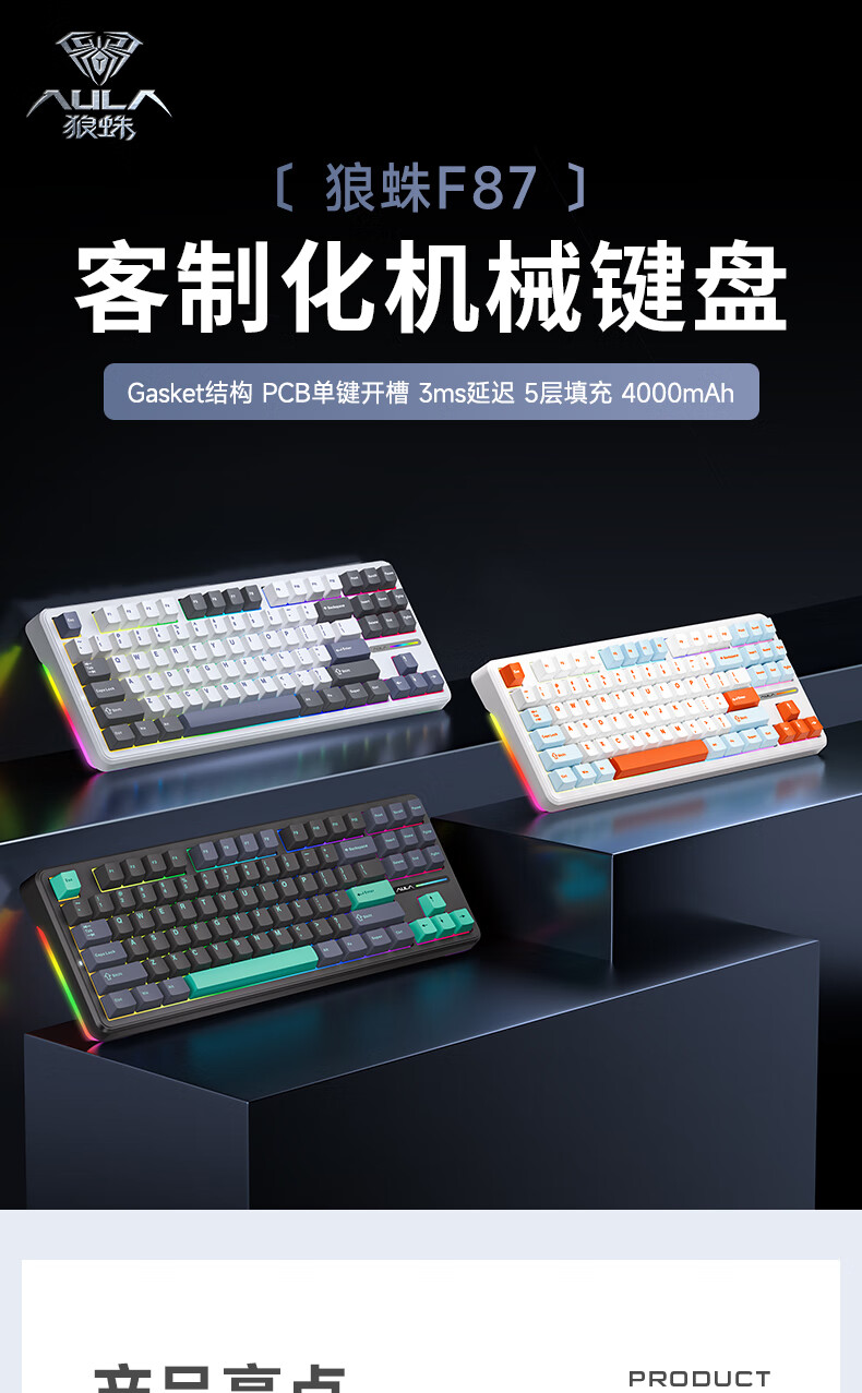 狼蛛(AULA)F87客制化机械键盘全键热插拔gasket结构三模无线蓝牙电竞游戏办公键盘 F87 Pro时空秘境 8000mAh 灰木轴V4