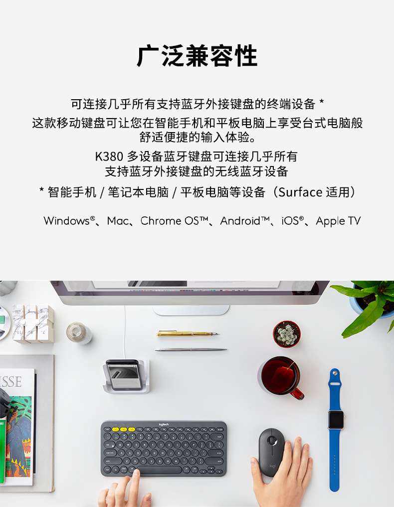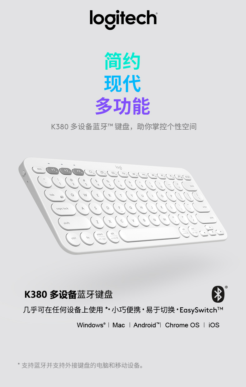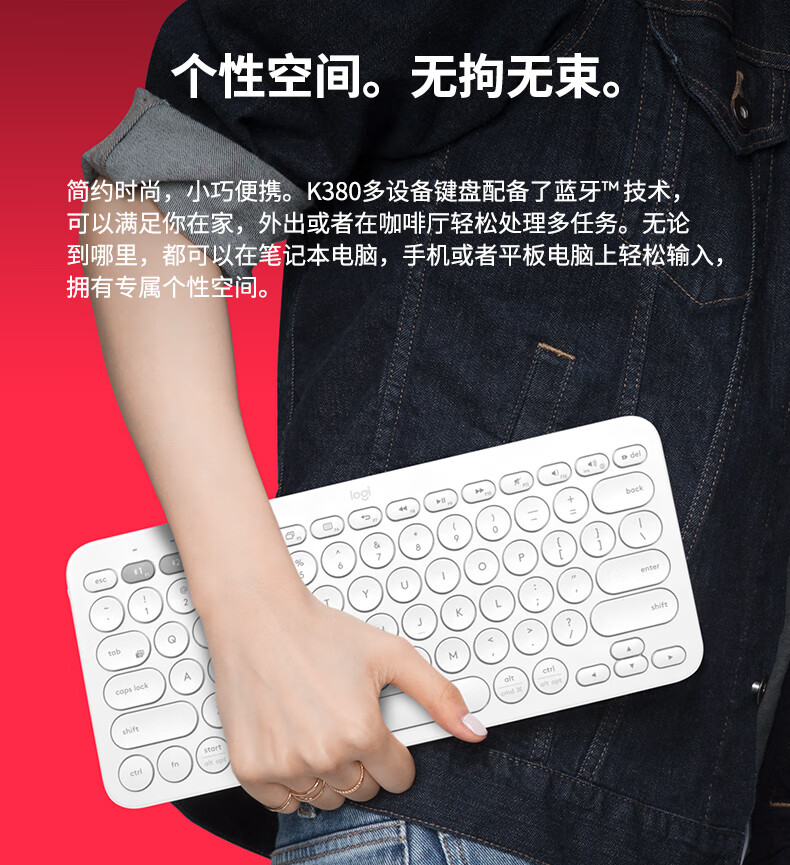 罗技(Logitech)K380 键盘 蓝牙办公键盘 无线键盘 女友 便携超薄键盘 笔记本键盘 茱萸粉