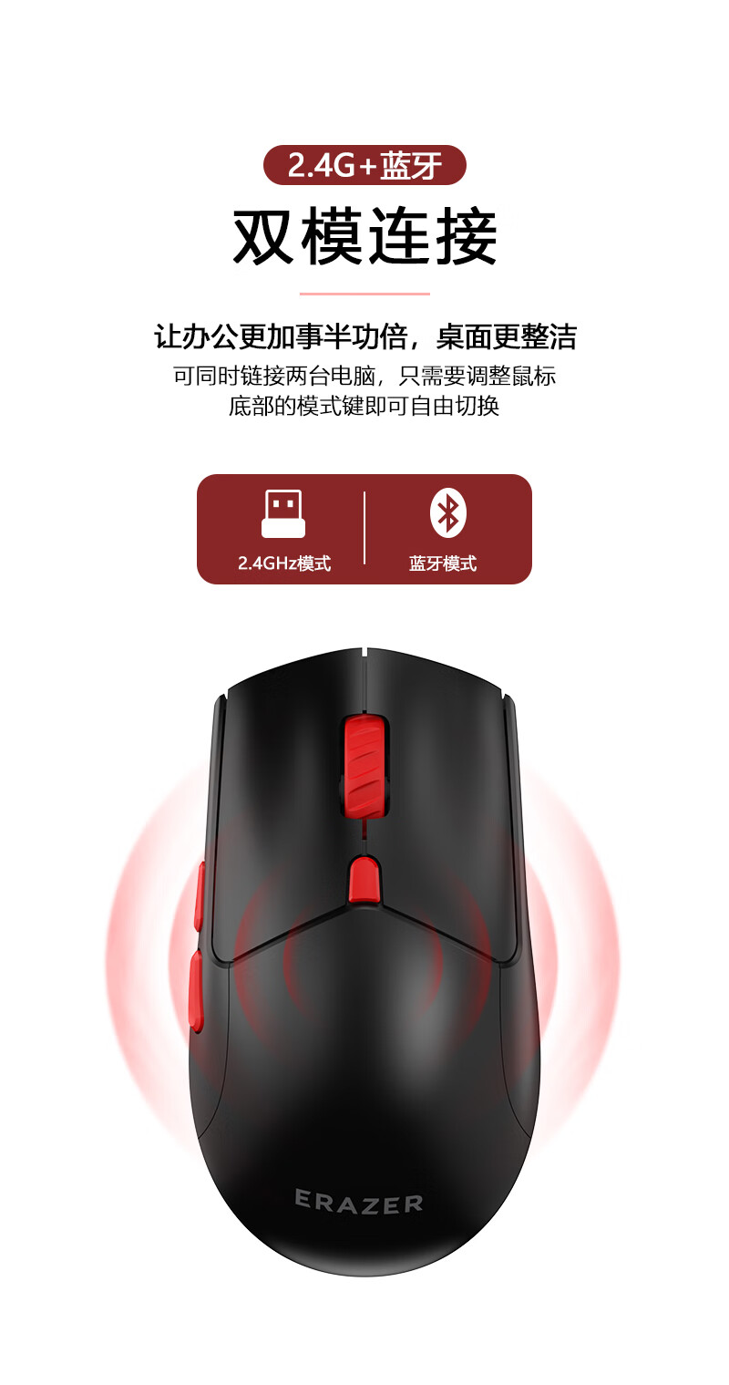 漫步者HECATE G3Mpro无线游戏鼠标 有线蓝牙三模电竞鼠标 办公静音鼠标3395轻量化设计 白色+定制防滑贴