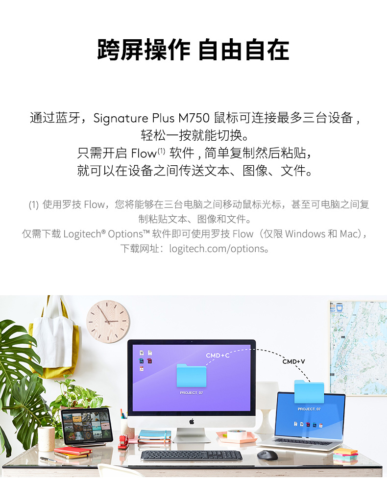 罗技(Logitech)M750M 通用版鼠标 无线蓝牙鼠标 静音鼠标 智能鼠标 对称鼠标 黑色 带Logi Bolt USB接收器
