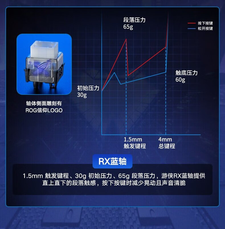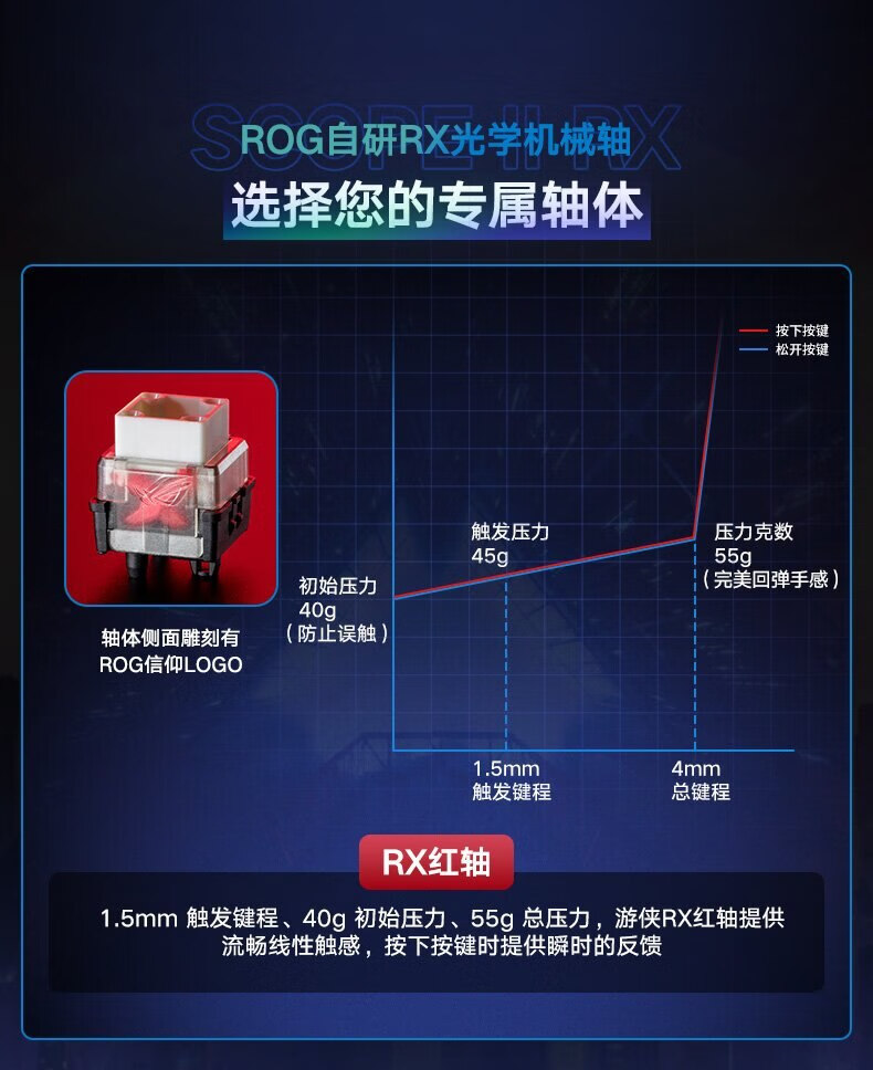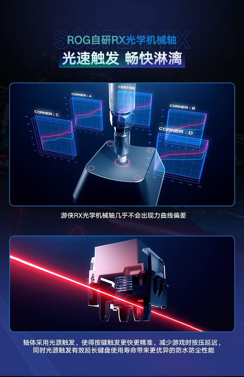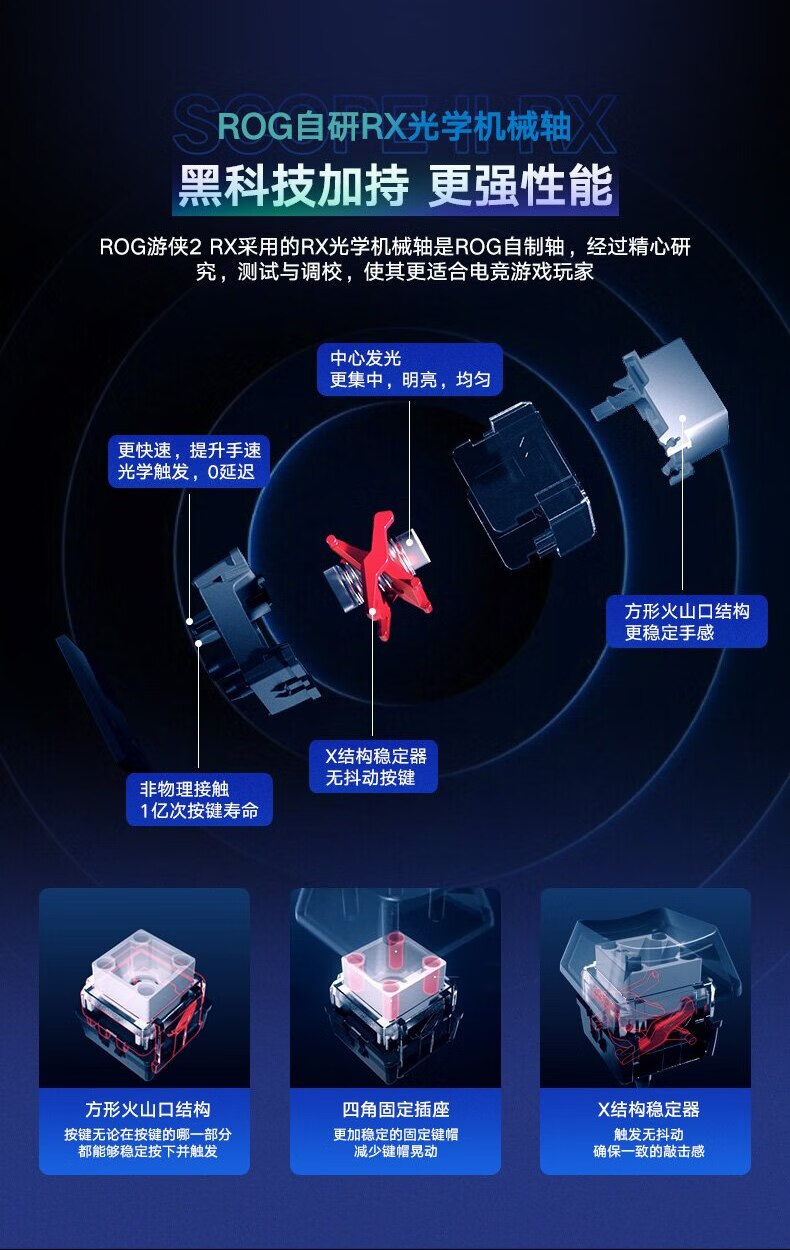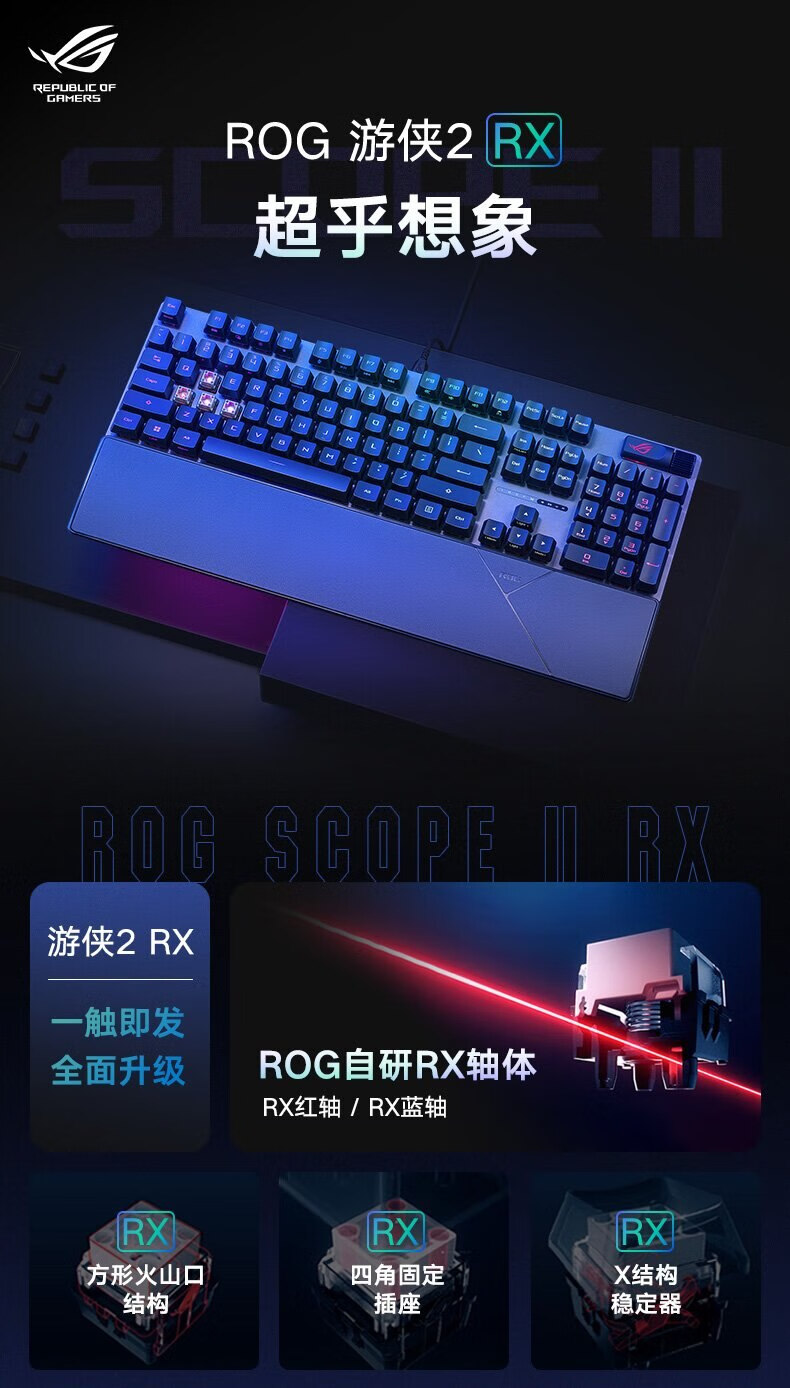 ROG 游侠2 RX 机械键盘 有线游戏键盘 RX蓝轴 RGB背光 键线分离 防水防尘键盘104键 黑色