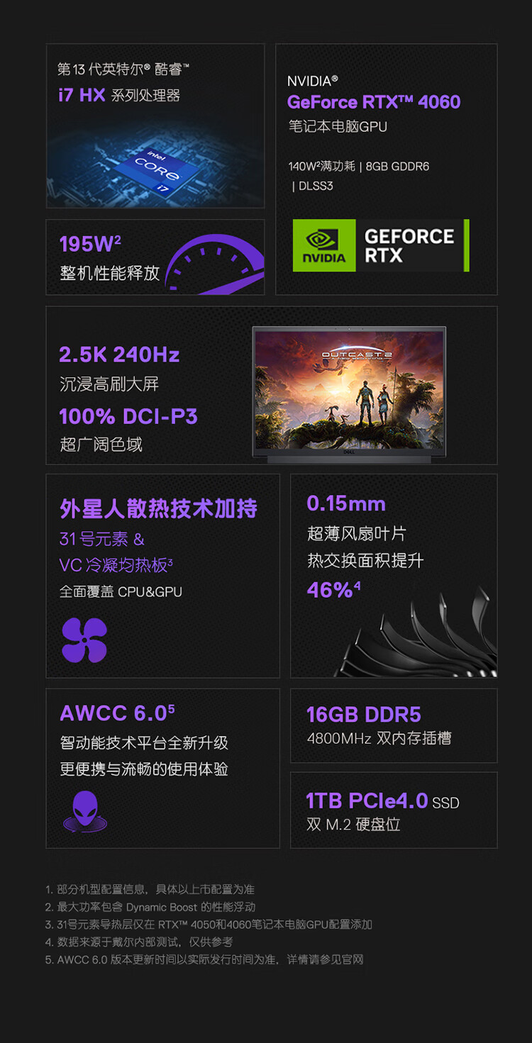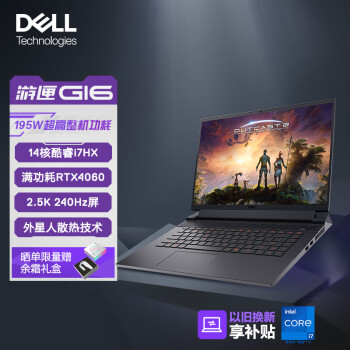 戴尔(DELL)游匣G16 游戏本笔记本电脑16英寸电竞本(14核酷睿i7HX 16G 1TB RTX4060 2.5K 240Hz 外星人散热)黑