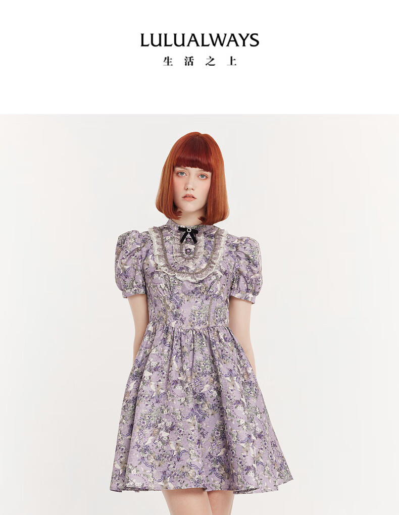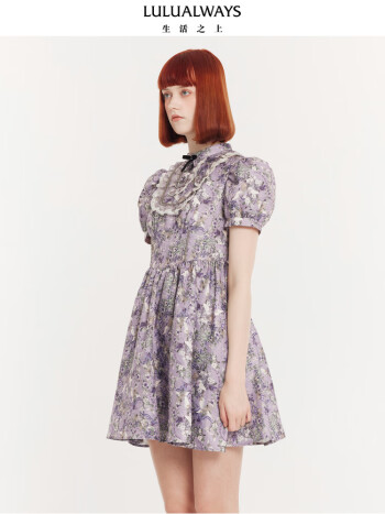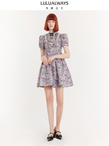LULUALWAYS我爱露露24夏季新款千金名媛甜美华丽提花短款连衣裙 紫色 S