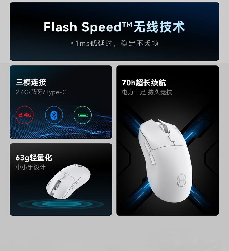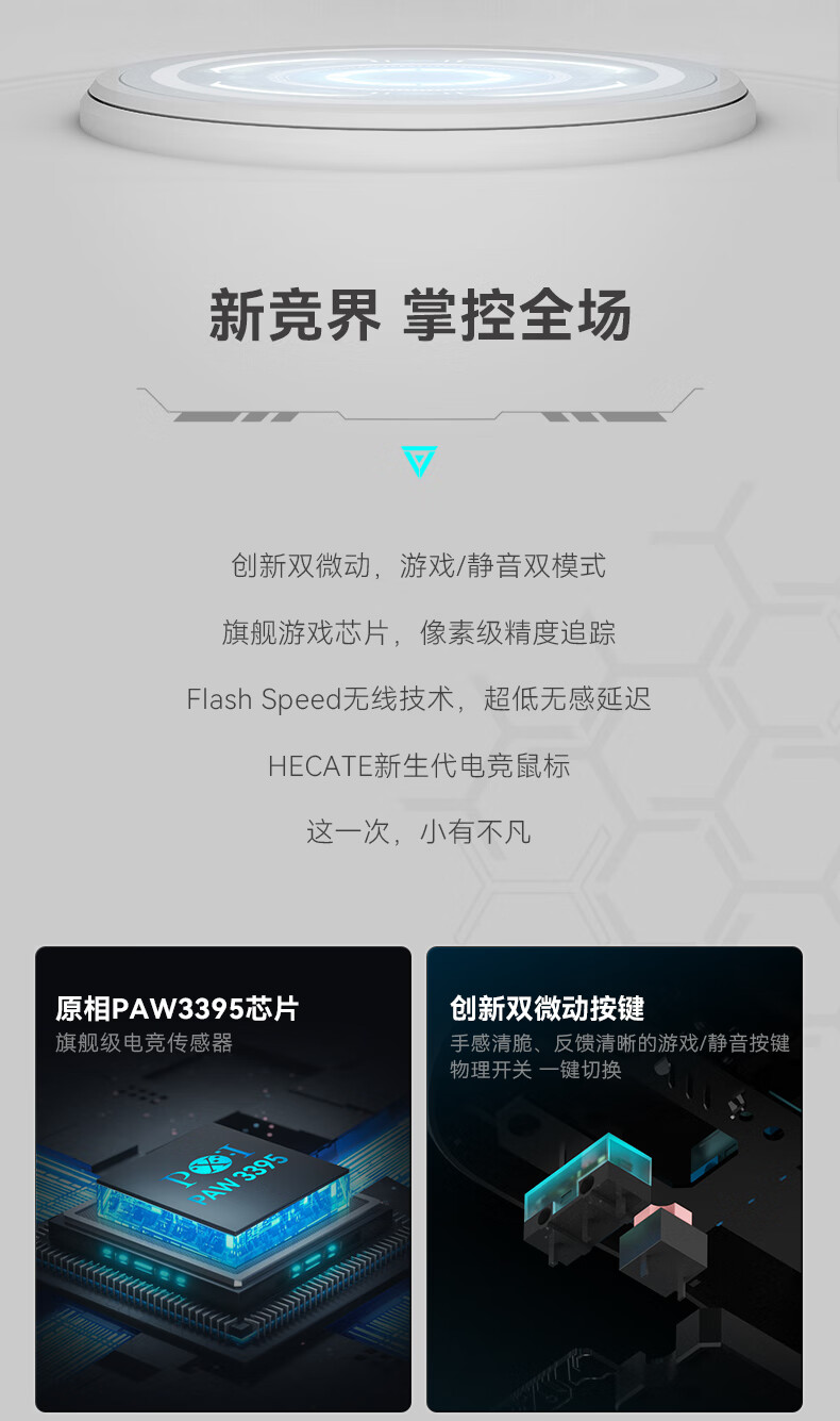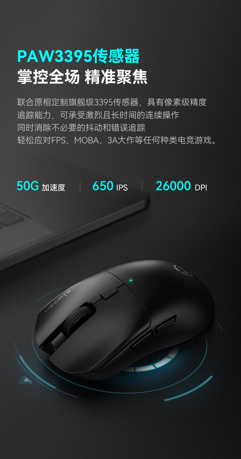 漫步者HECATE G3Mpro无线游戏鼠标 有线蓝牙三模电竞鼠标 办公静音鼠标3395轻量化设计 白色+定制防滑贴