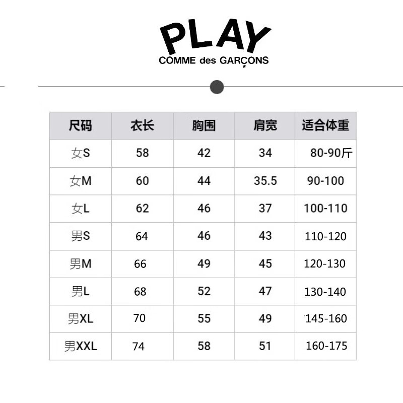 COMME DES GARCONS川久保玲PLAY红心黑心经典CDG爱心印花刺绣短袖t恤休闲男女情侣款 黑色黑心 男XXL