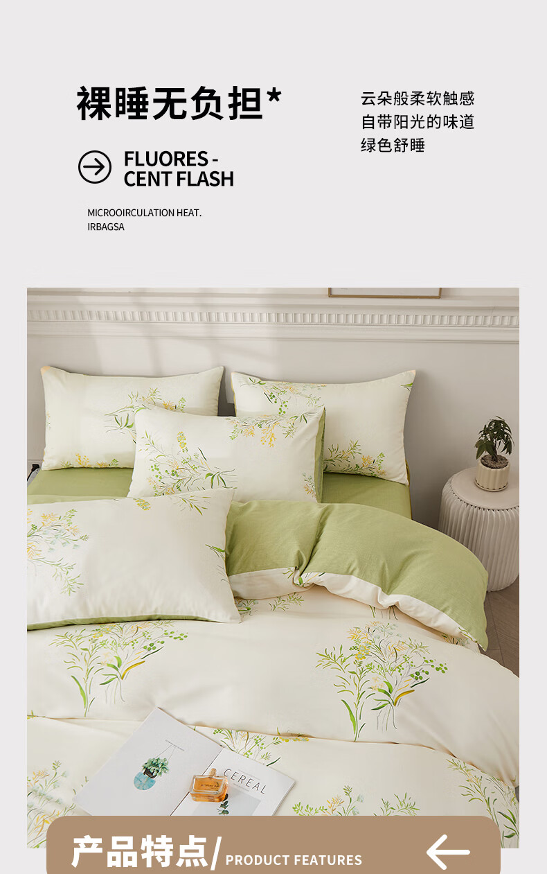 无印良品A类抗菌纯棉床上四件套 1.5/1.8米床单被套200*230cm清新绿