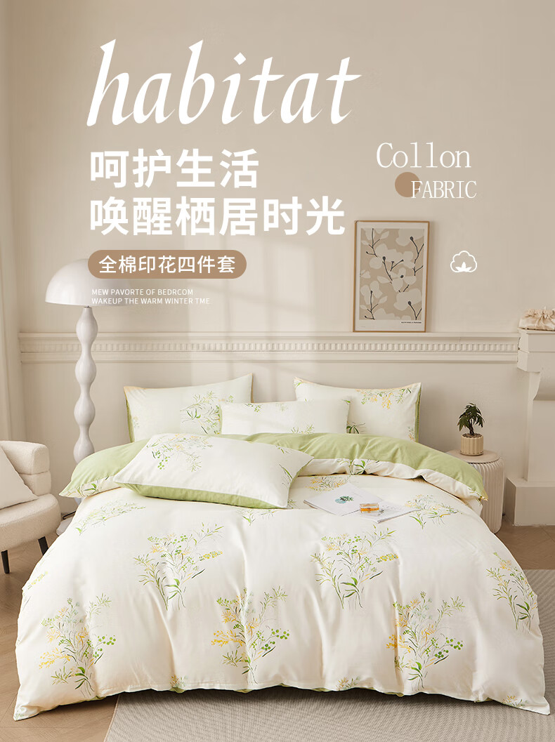 眠度床上四件套纯棉100%全棉被套床单床笠印花高端床上用品 银杏叶 1.8m床单四件套【被套2*2.3m】