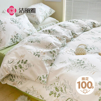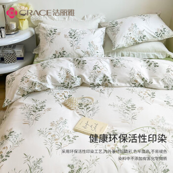 洁丽雅(Grace)100%纯棉四件套新疆棉床上用品床单被套200*230cm1.5/1.8米床